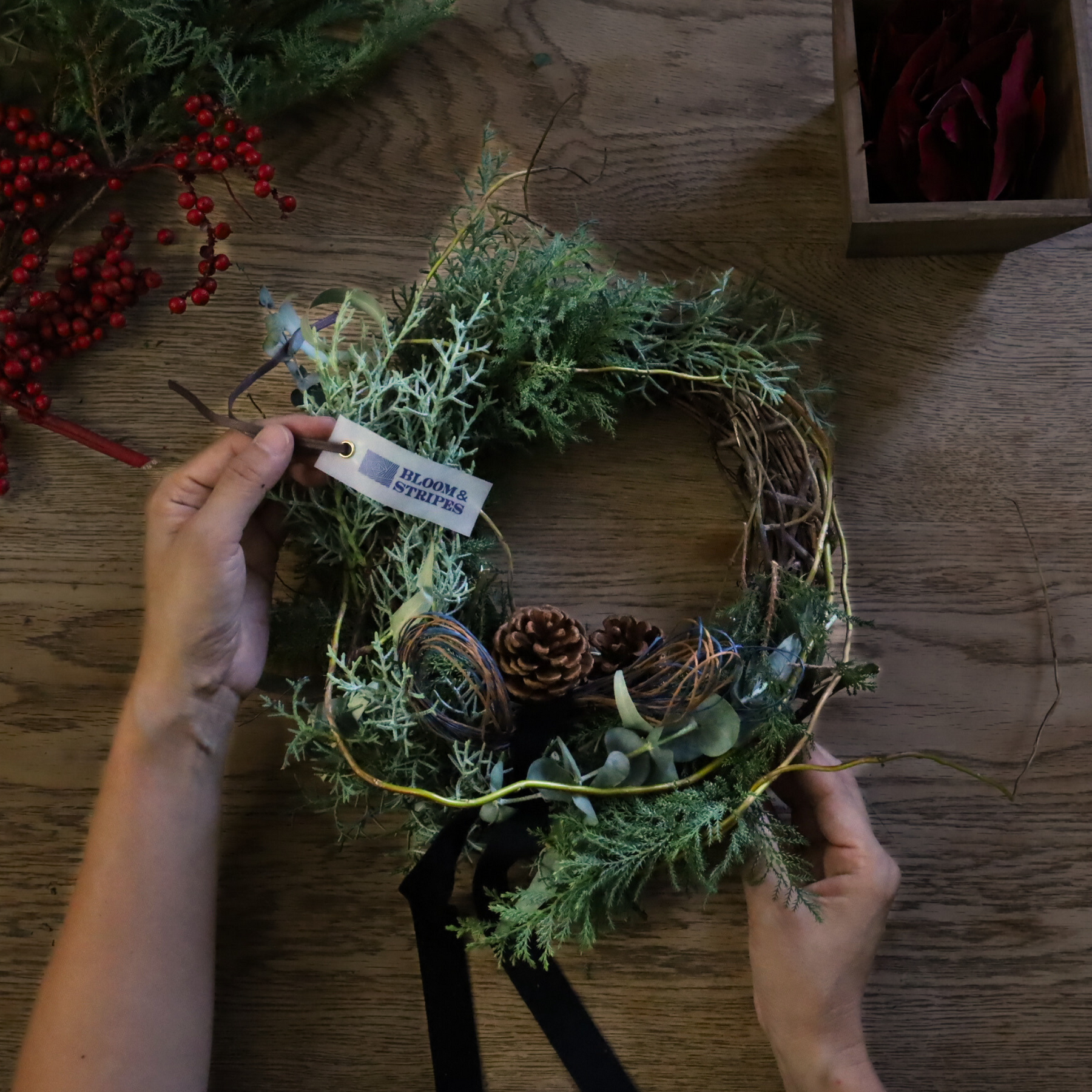 - フレッシュからドライへ、変化も楽しめる:飾りはじめは瑞々しく、その後は少しずつ落ち着いたウッディな雰囲気に。時間とともに表情を変える過程も魅力のひとつです。