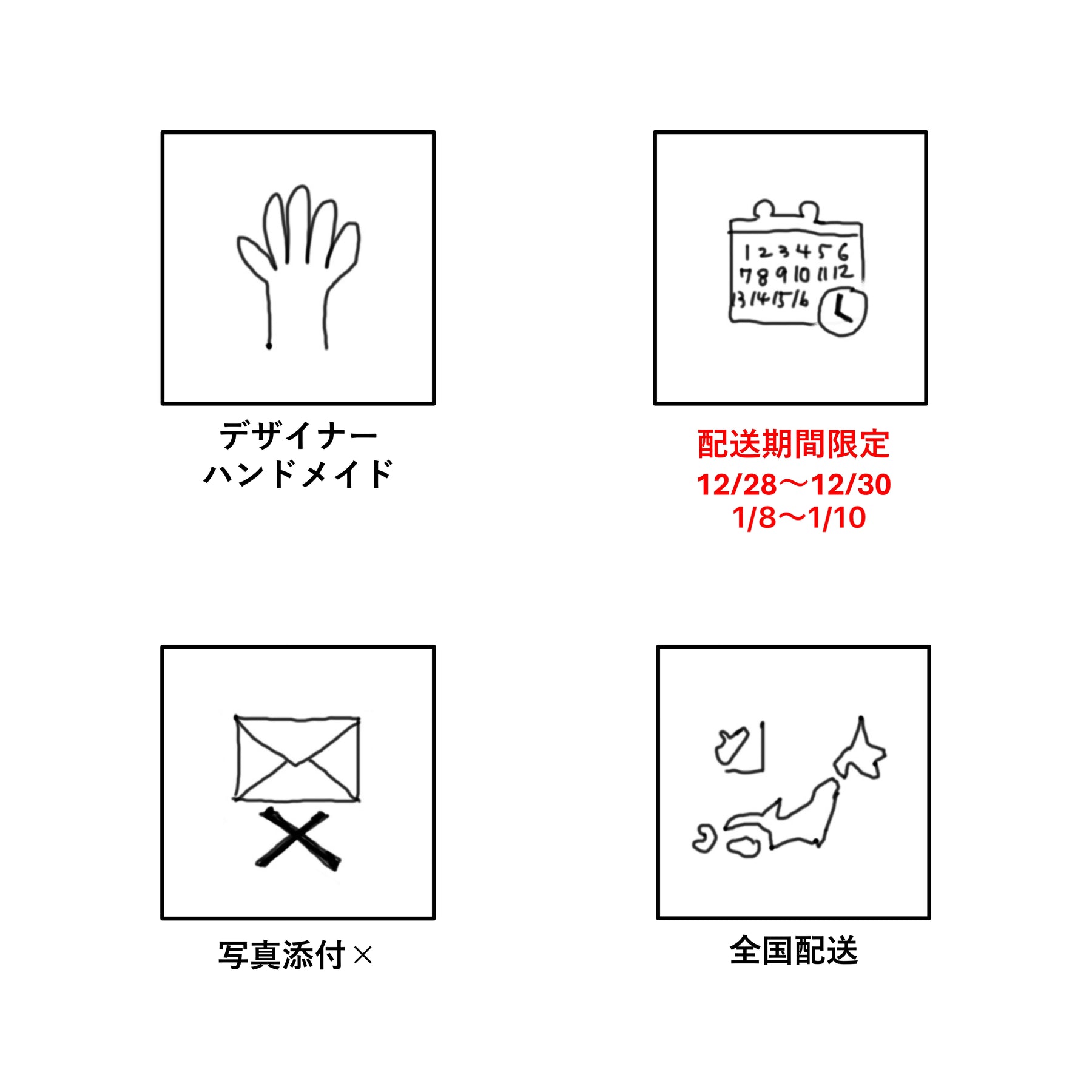 ※ご不在などお客様都合によりお届けが遅れた場合や、お受け取りいただけなかった場合は、保証の対象外となります。