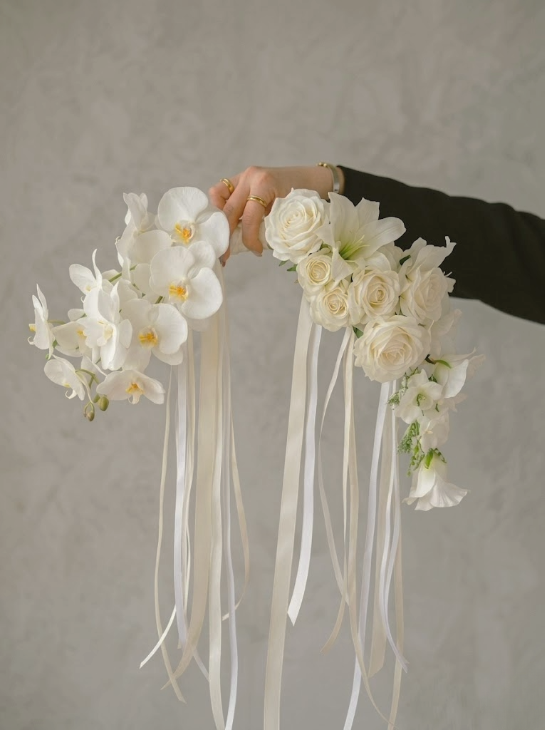 ち手を中心に花が左右へ優美な弧を描く韓国発祥の新スタイル。