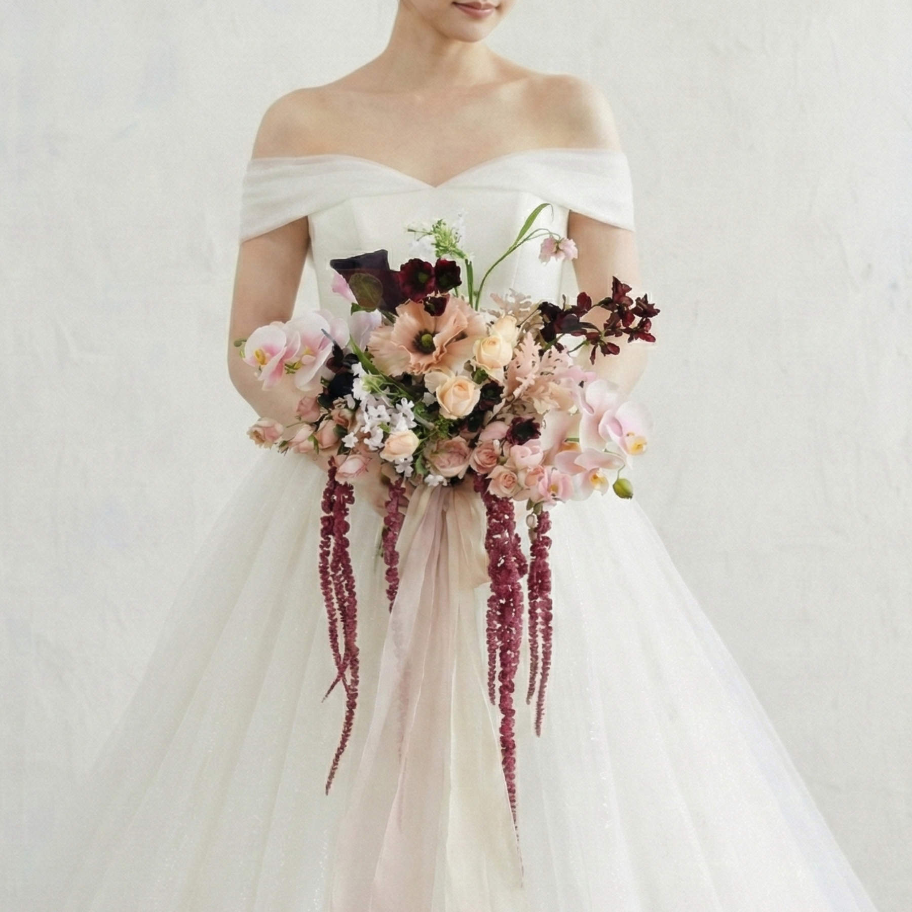 自分だけのブーケを一から創りたい方のための、完全オーダーメイドです。 ドレスの雰囲気、会場の空間、花嫁さまのイメージをヒアリングし、世界にひとつだけのブーケをお仕立ていたします。