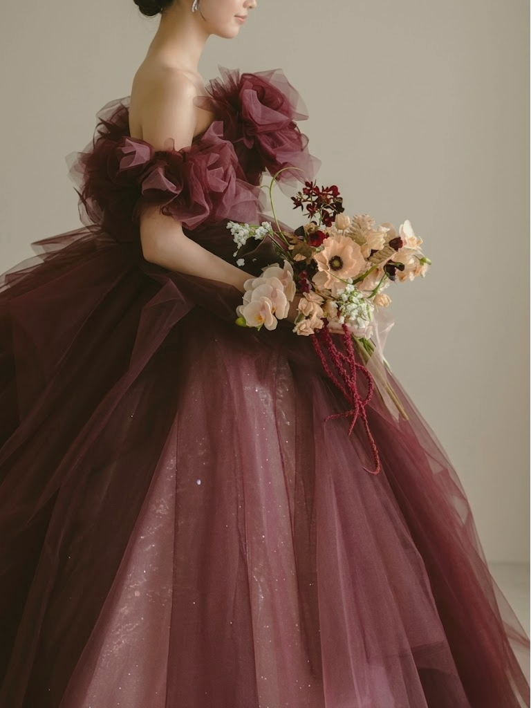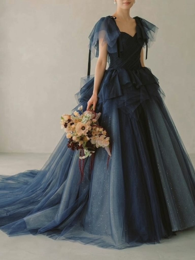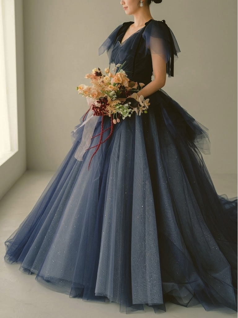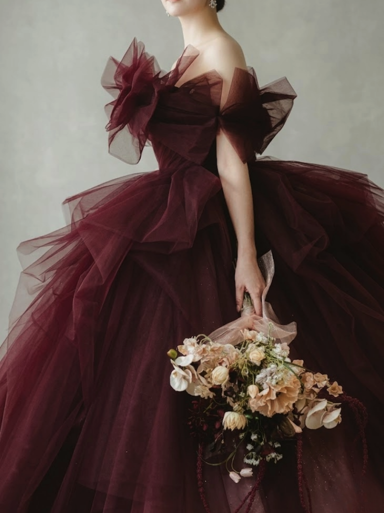 まるで風に揺れるようなやわらかな表情が、フェミニンでロマンチックな花嫁姿を演出します。
