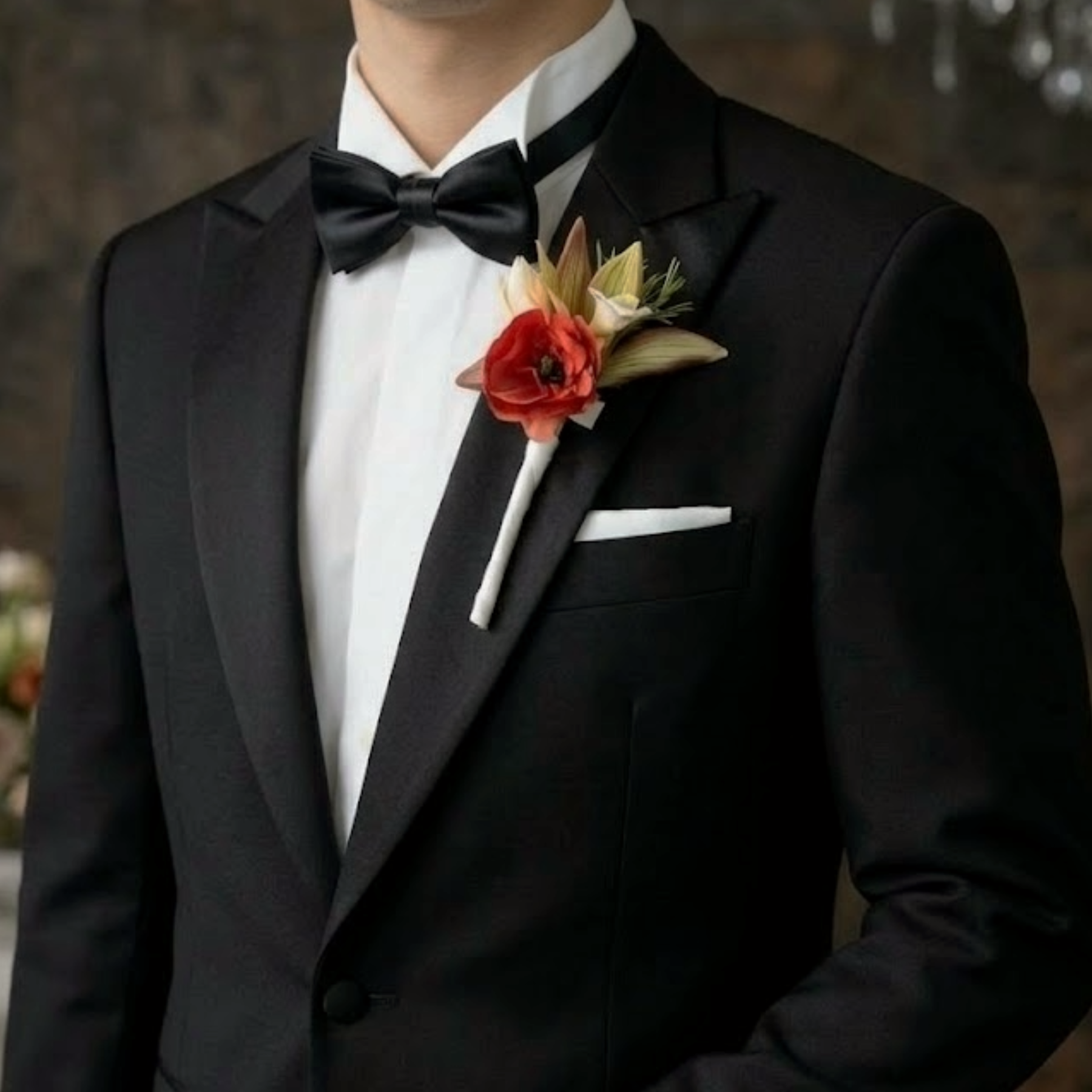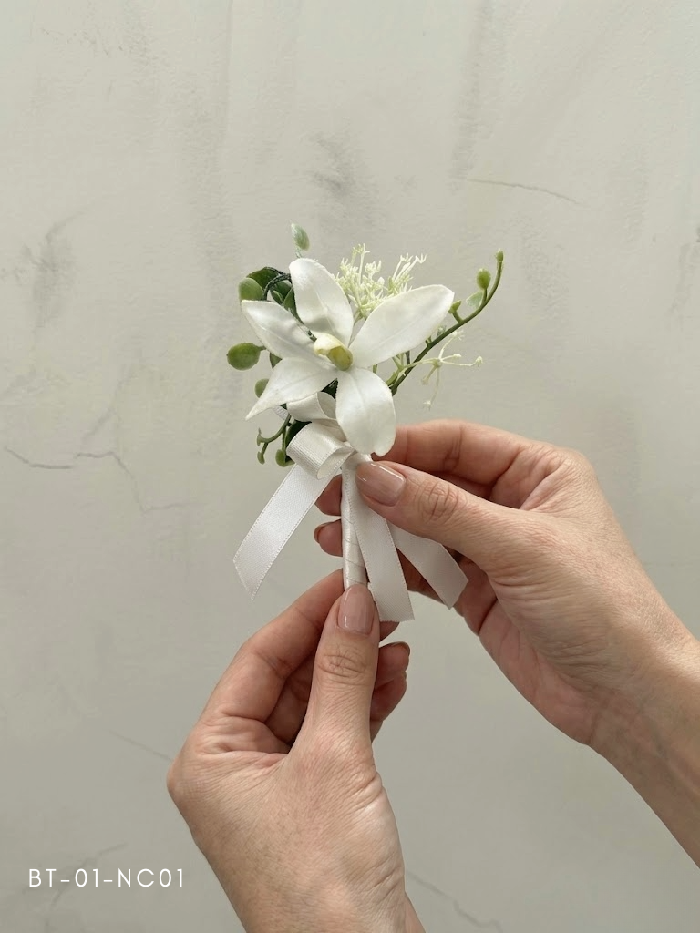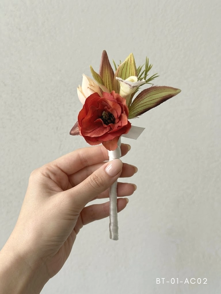 新郎様の装いがブーケと美しく調和するよう、ひとつひとつ合わせてお作りしているため、単品での販売は承っておりません。