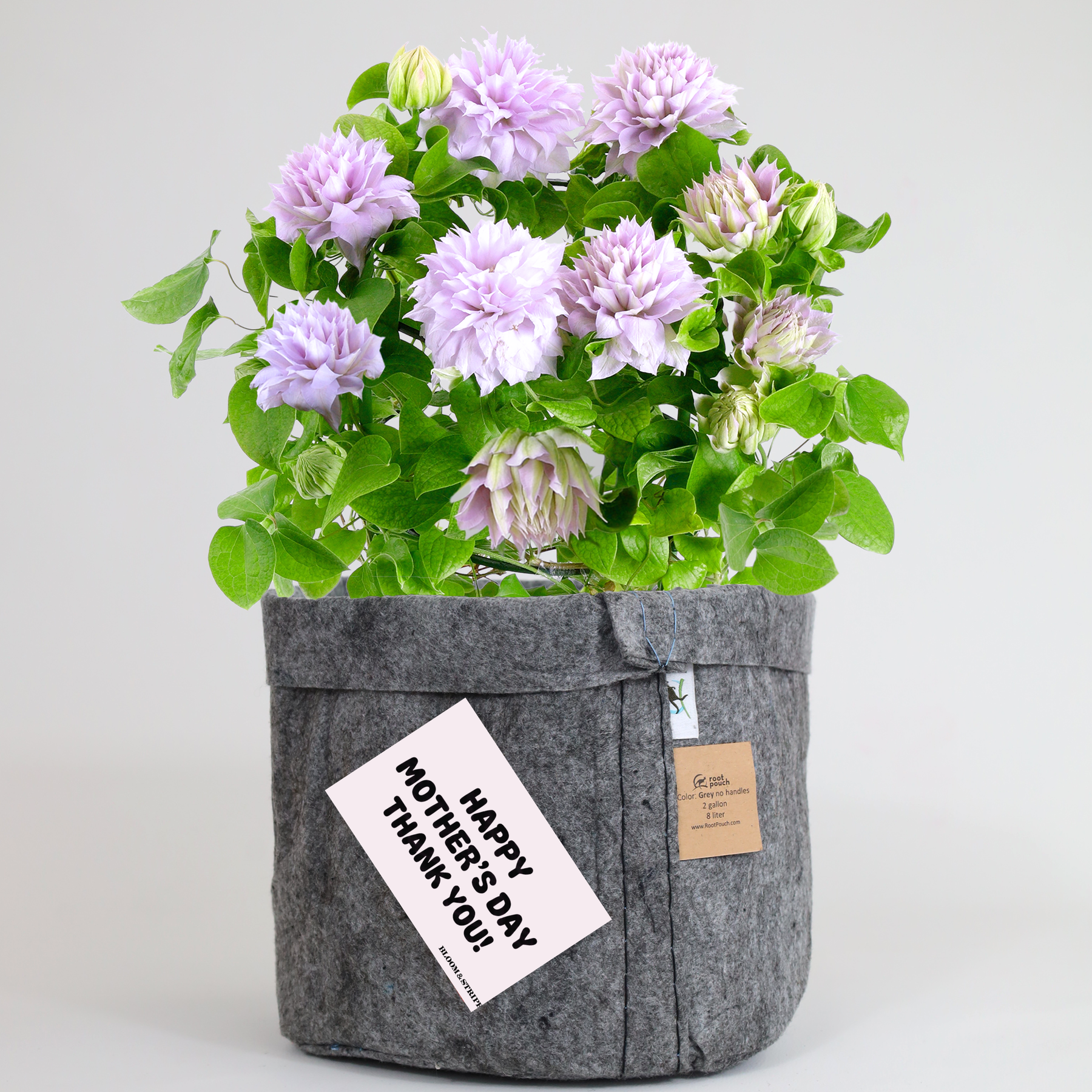 クレマチスは鉢植えなので次々に咲く花を長く楽しんでいただけます。