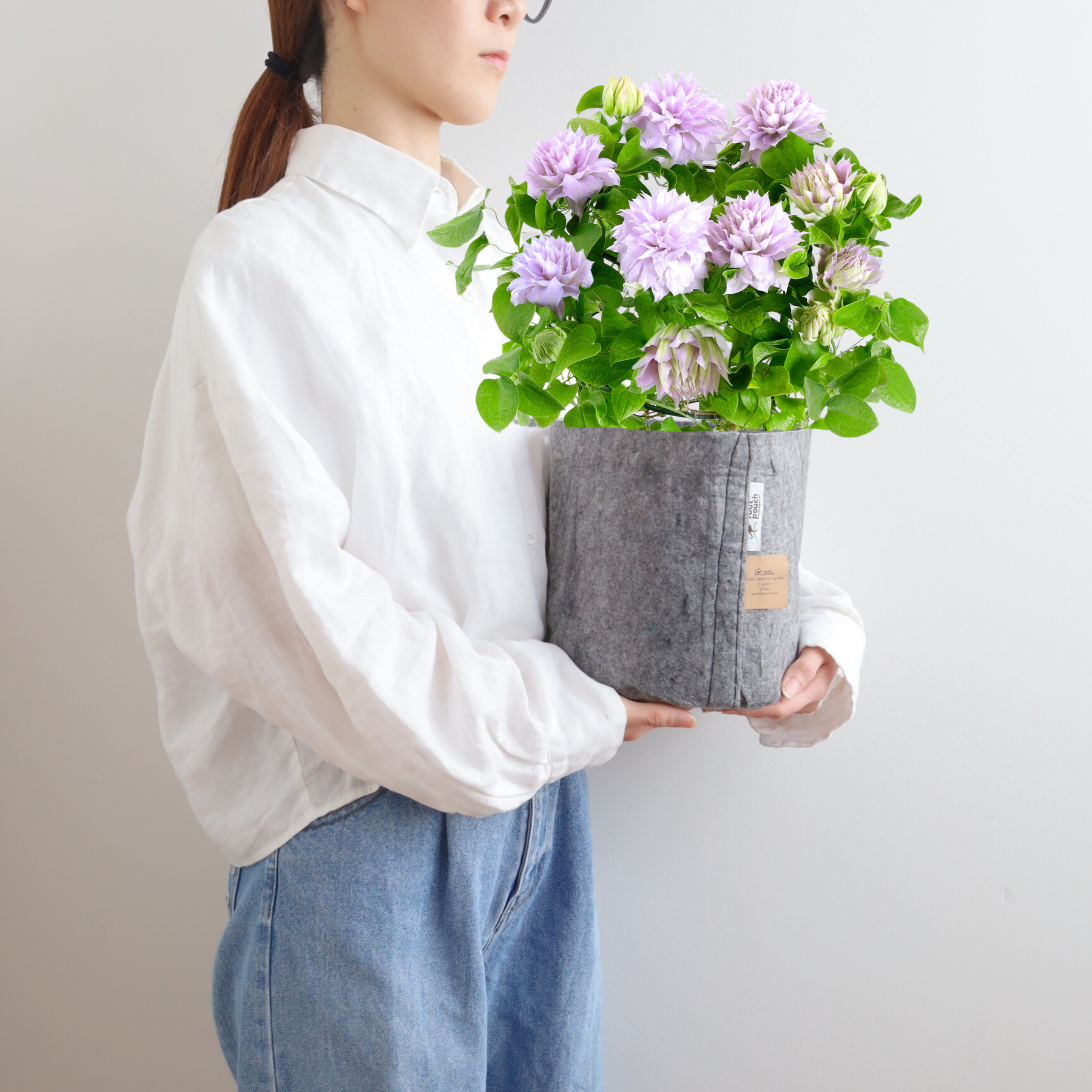 鉢カバーには、リサイクル素材から作られた環境にやさしい「ルーツポーチ」を使用。